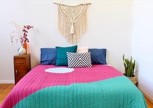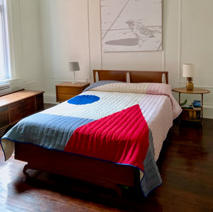 Vous avez une idée spécifique en tête? Vous aimeriez une courtepointe avec une palette de couleur agencée à votre décor? Complétez le formulaire en ligne de courtepointe sur mesure dès maintenant! Ce processus de co-création permet de vous proposer une courtepointe unique, confectionnées spécialement pour vous.